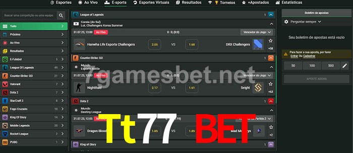 O Tt77 Bet oferece uma grande seleção de opções de apostas em e-sports com probabilidades competitivas